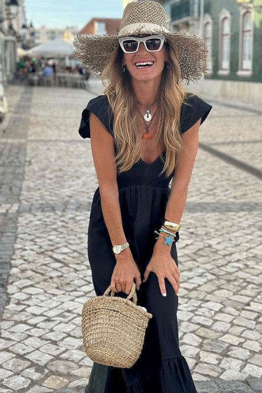 The Elegant Black Gown with Satin Bow combines sophisticated design with quality craftsmanship. The gown's classic black color offers versatility for various occasions, while the satin bow provides a refined touch, enhancing the overall aesthetic. This garment ensures a flattering silhouette, making it suitable for both formal and semi-formal events.