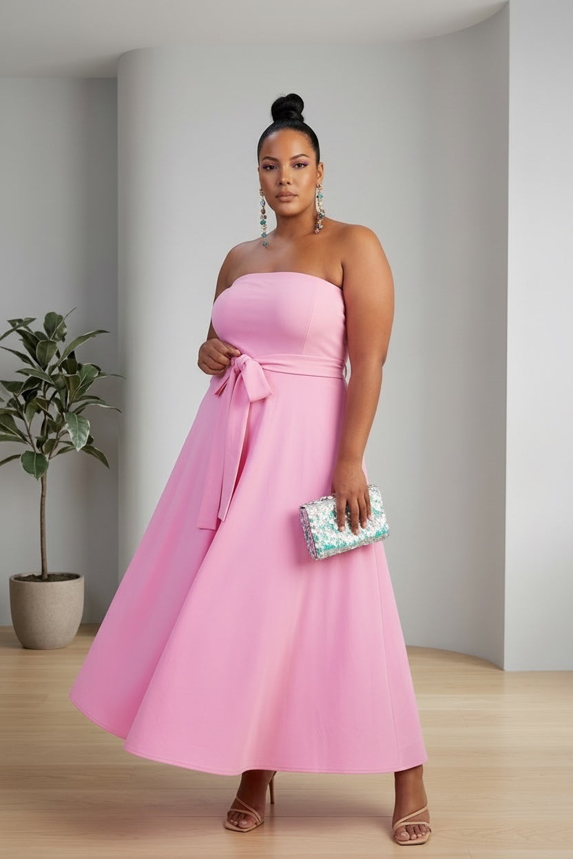 Look stunningly effortless in our Pink Strapless Plus Size Maxi Dress! The belted waist and practical pockets provide a perfect combination of style and function for our curvy beauties. Show off your curves and embrace comfort with this addition to your wardrobe!