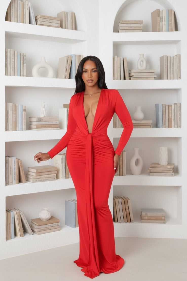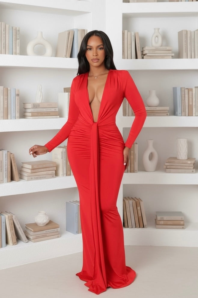 Step out in our Bold Moves Dress this holiday season. The rich red color is perfect for festive celebrations, while the flattering plunge neck adds a touch of elegance. Make a bold statement with this dress that will turn heads and exude confidence.