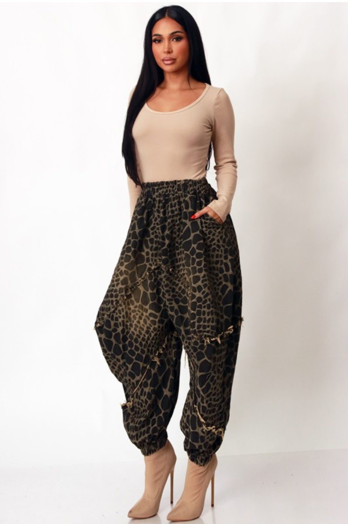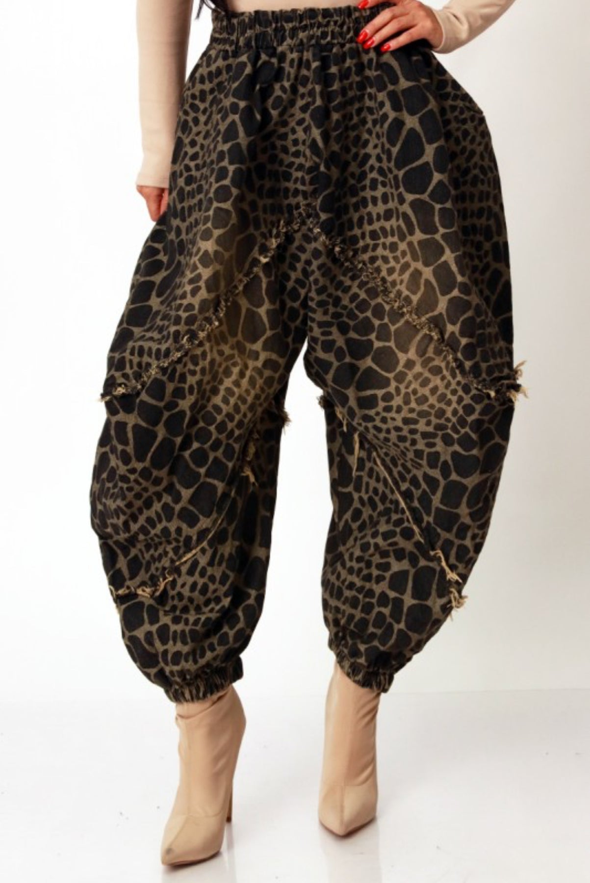 Unleash your wild side with our Animal Print Harem Pants. These edgy harem pants feature a bold reptile-like print, perfect for making a statement on the streets. Embrace your daring nature and stand out from the crowd in these unique pants.