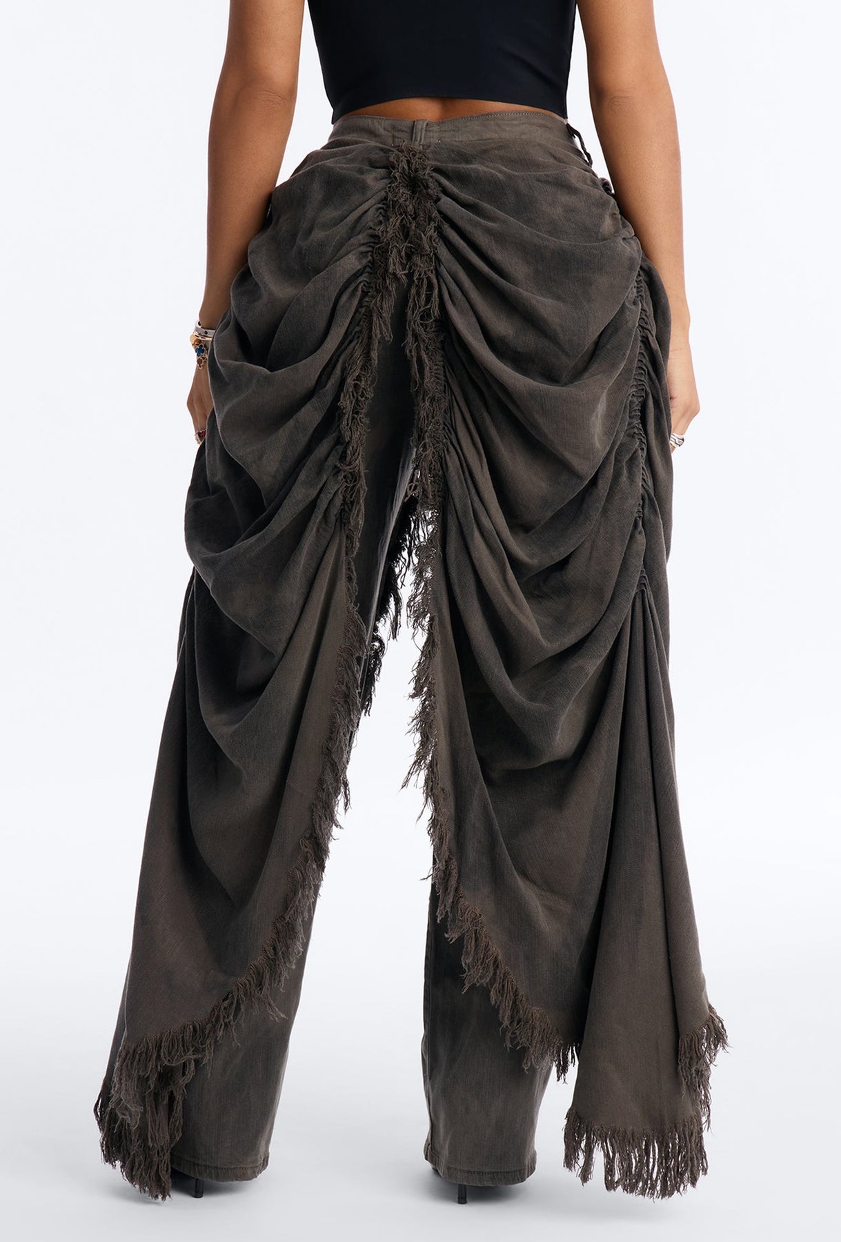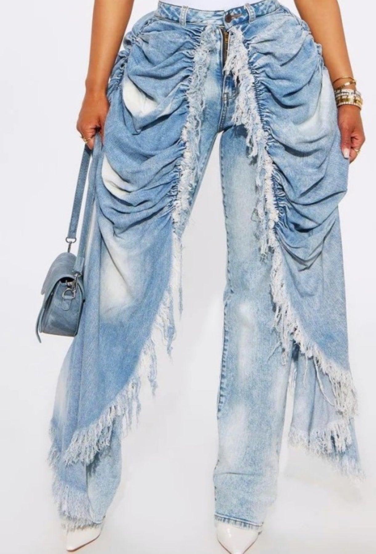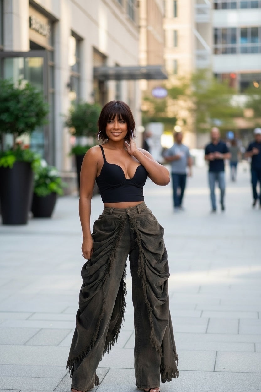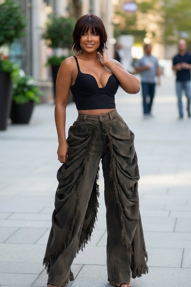 Upgrade your denim game with our High Rise Vintage Olive Washed Drapery Jeans.