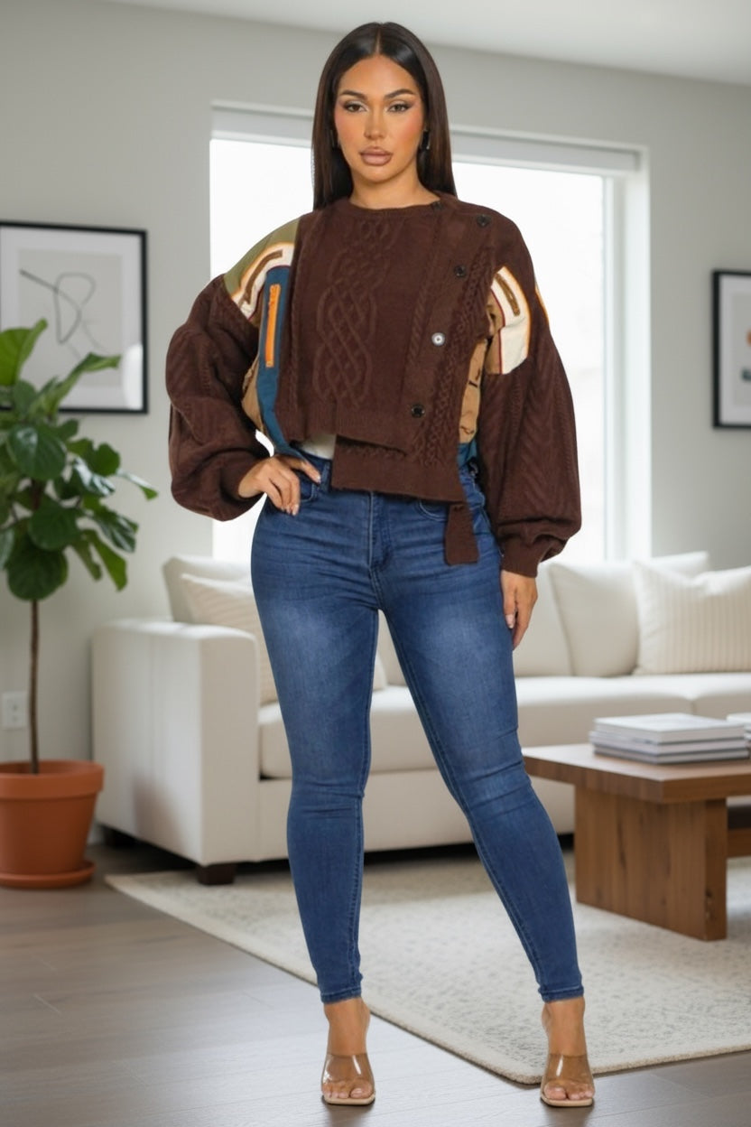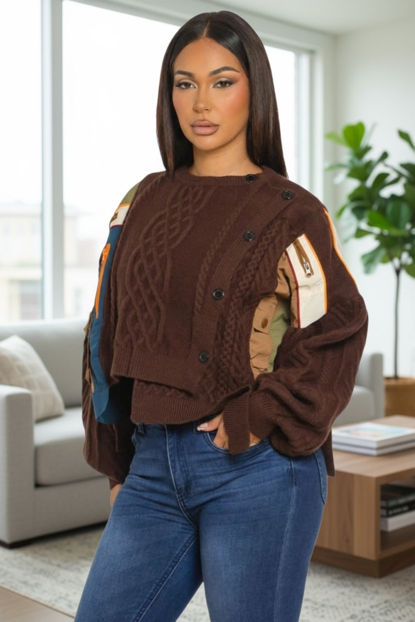 Explore new fashion territory with our Patchwork Brown Sweater! Made with patch work and multi zippers, this bold and daring sweater is perfect for those who love to take style risks. Stay warm and stand out in this unique and adventurous piece of clothing.
