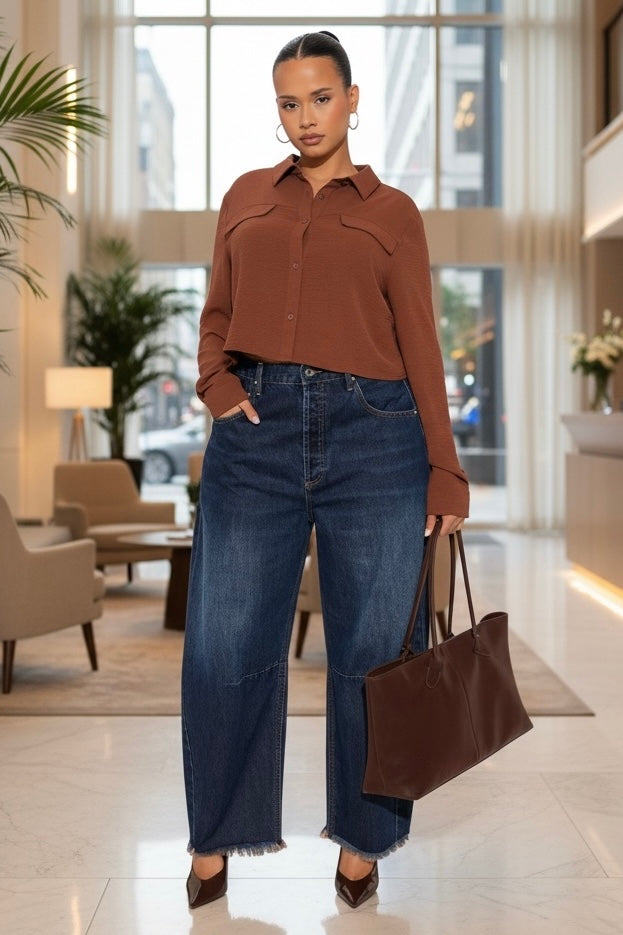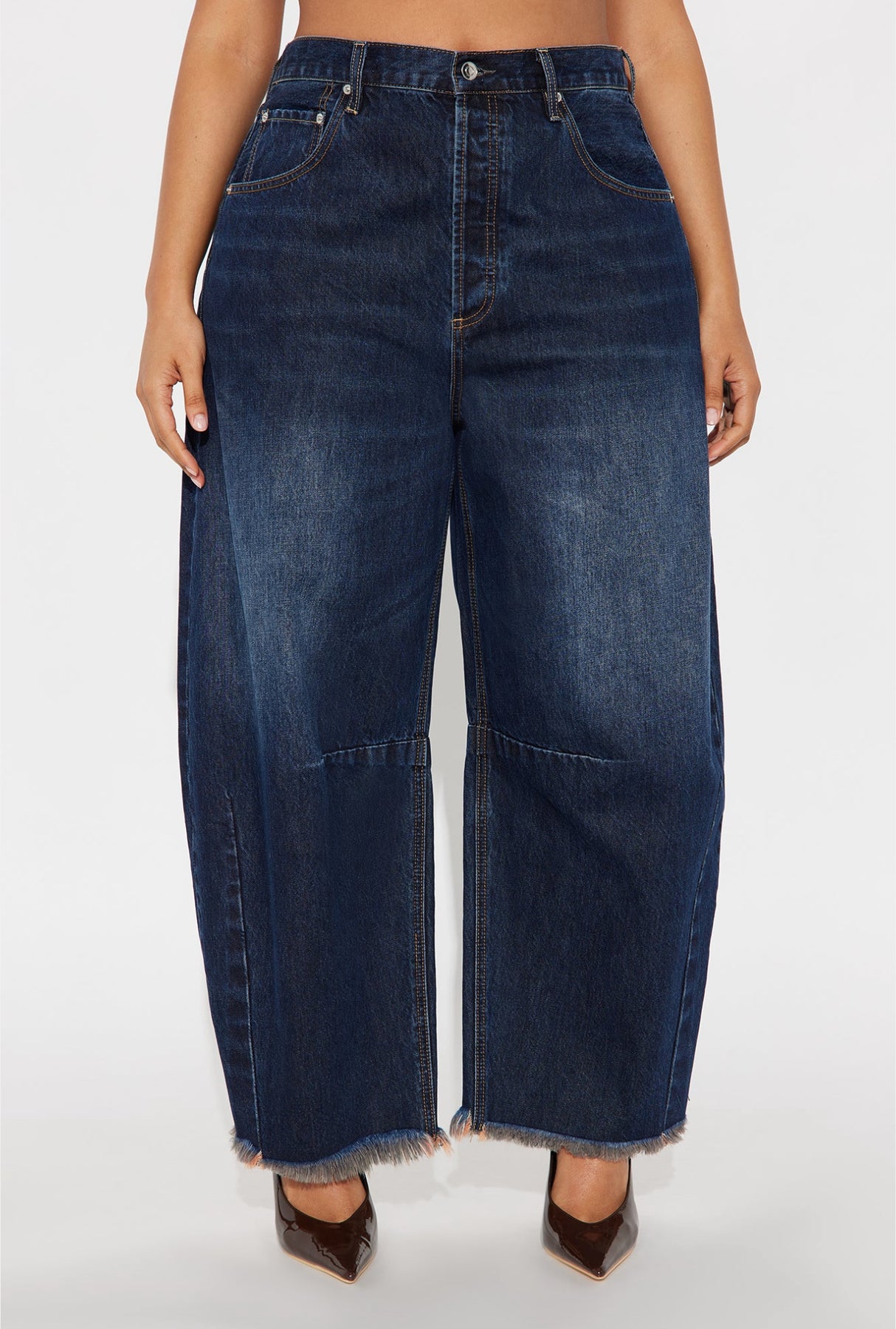 These Wide Leg Barrel Jeans feature a frayed hemline for a stylish and edgy look. Made with a wide leg design, these jeans provide a comfortable and relaxed fit. Perfect for any casual occasion, these jeans are a must-have for any fashion-forward wardrobe.